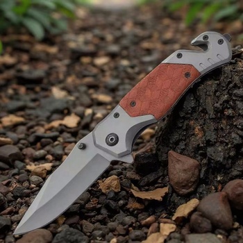 Cuchillo de bolsillo de supervivencia táctico plegable OEM con mango de madera de olivo grabado X50